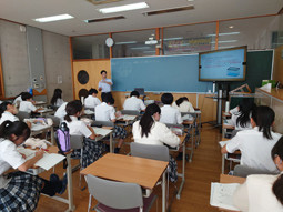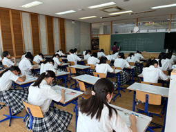 1年生の数学の授業の様子です。今日から比例の授業に入りました。伴って変わる2つの数量に関して、水面の高さを例に学習しています。これから表、グラフ、式を相互に関連付けて学んでいきます。期末試験も近いので気を引き締めて頑張って欲しいです。