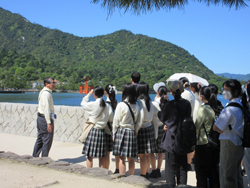 インターアクト同好会は夏休み中に福山で開催された地区大会に参加しました。この行事は広島・山口地区のインターアクトが合同で行う研修会です。福山城や鞆の浦を見学し、福山市の地域活性化への取り組みについて学びました。インターアクトはボランティア活動だけでなく、社会学習の機会も多い部活動です。