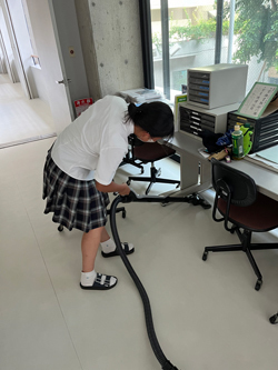 一生懸命掃除をしている姿は見ていて気持ちがいいです。みんなが使う場所をきれいにし、大切に使おうという意識が伝わってきます。これからも継続してほしいと思います。
