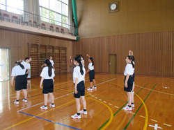 こちらの写真は、中等部新体操の練習の様子です。9月に入りましたが、体育館内は依然として蒸し暑く、そのような環境の中でも、毎日練習に励む姿に感心しています。今月はジュニア大会を控えており、生徒たちはその大会に向けて懸命に練習しています。是非頑張ってほしいです。