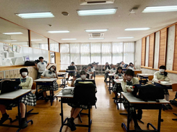 本日、高等部3年生は特進コースと希望者を対象に共通テスト模試を実施しました。「情報」も新たに試験科目に加わり、今まで以上に勉強が大変になっています。本番まで残り4ヶ月となりました。今回の模試の結果を基に、自分の弱点を強化してもらえればと思います。