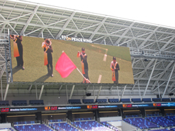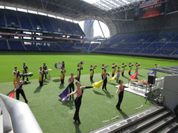 昨日、広島県サッカー協会の設立100周年を記念したイベントがエディオンピースウイング広島で行われました。そのオープニングセレモニーでは、気持ちの良い青空の下で本校の吹奏楽・マーチングバンド部とカラーガード部が演技を披露しました。本校のパフォーマンスが協会の節目となるイベントに花を添えることができていましたら光栄です。