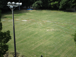 グラウンドに冬芝の種を撒きました。鳥よけテープを張り、冬芝の種を鳥が食べないようにしています。数日で目が出でて3~4週間で、グラウンドを使用できるようになります。無事に冬芝が生育することを願っています。
