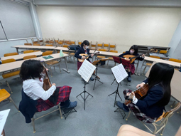 マンドリン部は、今週の日曜に広島県高等学校ギター・マンドリン音楽祭に出場します。今は部員の半分以上が中等部生なので、中高全員で演奏します。迫ってきた本番を見据え、録音を聞くなどの確認を通して、自分の苦手な部分を繰り返し練習しています。高3の先輩が引退して初めての舞台となるので、部員たちはとても緊張していますが、全力を出し切れるよう祈っています。