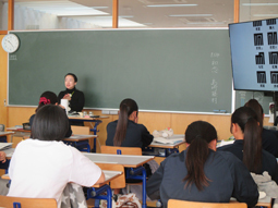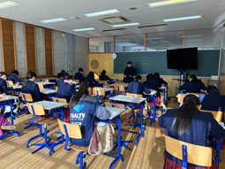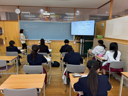 高2高3の生徒たちは、後期中間試験が終わったばかりですが早速通常運転で授業を受けています。こちらは、「こども音楽」の授業風景です。こども達と楽しく体操ができるよう、笑顔で歌を歌ってくれました。振付もばっちりです。数年後、保育士や幼稚園教諭として同じ光景が見られるよう応援しています。