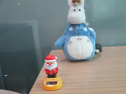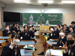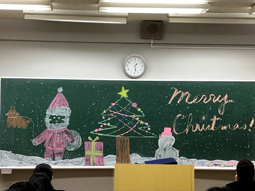 3年生の英語の授業に行くと、サンタクロースが出迎えてくれました。一緒にいるのはネコにしか見えませんが、角があるのでトナカイです。今年もあと3週間あまりとなりました。冬休みが待ち遠しいですね。