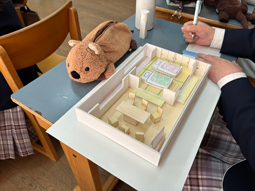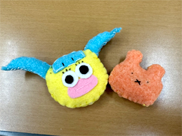 こちらの写真はクラスの生徒が作ったマスコットたちです。最近、家庭科の授業で裁縫を習った様子で、余ったフェルトで作ってくれました。とてもかわいらしく、癒されています。次に何を作ってくれるのか楽しみです。