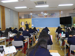 中等部1年生は、数学で空間図形を学習していました。難しい内容ですが、生徒は先生の話をよく聞いて理解していました。引き続き頑張ってほしいです。