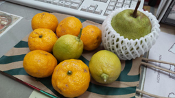 今日も有り難いことに、同僚からの頂きものがありました。同僚の親戚の家の庭でなった柚とレモン+ラ・フランス。新鮮な黄や黄緑の色合いと爽やかな香りが、季節の味わいを教えてくれます。