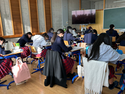 12月に入り、本格的に寒くなってきました。生徒たちはジャケットだけでは寒そうで、用品販売でコートを購入している生徒もいました。