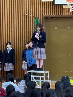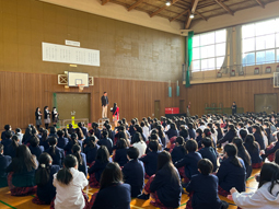 1月20日(月)から2月7日(金)までの3週間、フィリンピンより留学生が来ています。今日は集会で挨拶をしてくれました。
