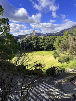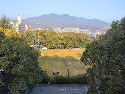 校舎からは、極楽寺山を背景にして、グラウンドがとても良く見えます。
