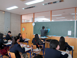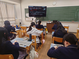 高2文系特進の数学の授業の様子です。複素数平面が終わりました。カリキュラムが変わって生徒が学習する範囲も広くなりましたが、先生・生徒共々懸命に対応できるよう頑張っています。先日行われた共通テストの問題は、複素数平面の基本的な問題が出題されており練習問題と似ているなと話をしたりしています。残りは式と曲線だけなので、最後まで皆で頑張ります。