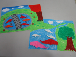 こども教育コースでは年に2回、保育検定を実施しています。絵本の読み聞かせや折り紙などが試験の課題となっており、保育士の基礎を身につけることができます。写真は、折り紙を使った作品です。少しずつ基礎を身につけて、将来素敵な保育士になってほしいと思います。