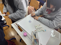 三角定規を使いながら、作図に取り組んでいました。見ているととても難しそうな内容でしたが、このような学びを通じて力の仕組みを理解することは日常生活で役立つ場面が多いと思います。特に理科は生活と深く結びついているので、今回の学びをきっかけに、身近な現象に興味をもち、様々な場面で活かせる力を身につけてもらいたいです。