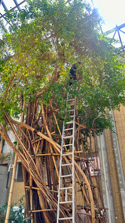 4月になり、2025年度がスタートしました。職員一同、気の引き締まる思いです。そんな中、山女のシンボルともいえる校舎内のベンジャミンの葉の剪定を行いました。業者さんが長い梯子を使って、生い茂っていた葉や枝をどんどん切っていきます。しばらくするとまた新芽がぐんぐん伸びて、校舎内を緑で覆ってくれることと思います。