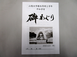 高等部2学年は来週,校外学習で平和公園を訪れ,慰霊碑巡りをします。先日,事前学習を行い,しおりも出来上がりました。広島に原爆が投下された日の朝,今の平和公園がある場所で多くの高校生が建物を取り壊す作業(建物疎開)に従事していました。亡くなられた方々に思いを向け,改めて平和についてよく考える機会にしてほしいと思っています。