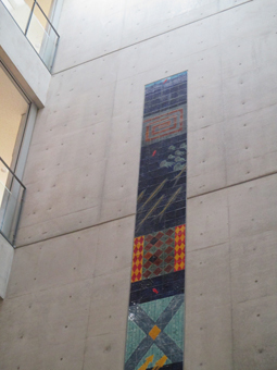 こちらは中等部ホールにあるステンドグラスです。ステンドグラスには、魚が上っていく様子が描かれており、生徒が夢に向かって成長していく姿を表現しているそうです。たくさんの魚が描かれていますので、ご来校の際にはじっくりと鑑賞してみてください。