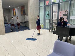 4月から1~3学年の縦割りで掃除をしています。上級生は下級生の見本となることで、そして1年生は遠慮なく上級生を頼って、それぞれ成長していってほしいと思っています。