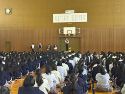 今朝は月に1度の生徒集会がありました。生徒集会では、先生からのお話やクラブの大会結果を踏まえた表彰などを行います。今日は進路部長の先生から、進路を選ぶときの情報収集の大切さについてお話がありました。事前に情報を集め比較し、自分に合った進路先を見つけてほしいと思います。