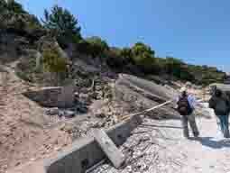 1・2年生特進コースは宮島をテーマに探求学習を進めており、今年度第一回目の実地研修を行いました。様々なテーマに分かれて調査をする中で、あるグループは島の戦争遺構を巡りました。鷹ノ巣砲台があった場所では、兵舎や砲座の跡を確認し、当時の様子を想像することができました。