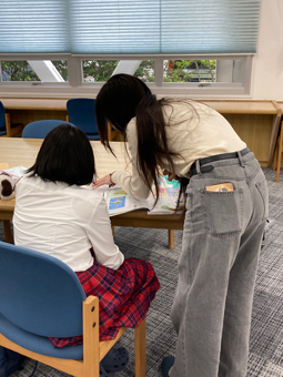 これは本校の卒業生が、在学生の放課後学習を支援するという取り組みです。宿題や授業で習ったけれどもわからないところを優しく教えてくれます。在学生にとっては「6年間でこんな風に私もなりたい!」と憧れる機会に、卒業生にとっては「私もこんなころがあったなあ」と懐かしむ機会になってくれればいいなと思います。