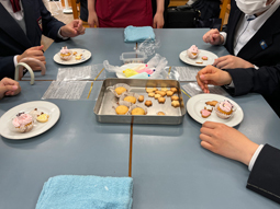 本日行われたオープンスクールで本校中等部生徒と参加者の皆様が、シフォンケーキを食べながら学校生活について語らう企画がありました。開放的な雰囲気のカフェテラスでリラックスしながら、日頃の学校生活のことやクラブ活動のことを知ってもらえる、よい機会になりました。