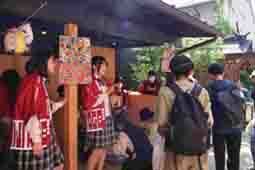 高2特進コースの宮島探究では、新しい試みとして産学協働に取り組んでいます。あるグループは宮島紅葉堂様の奥にある「揚げもみじ神社」周辺で縁日の手伝いをさせていただいています。どうしたらお客様たちに楽しんでもらえるか練磨して、次回に向けてさらに盛り上げてくれることでしょう。