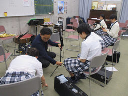 今年度も中等部個性輝き学習が始まっています。1年生のテーマは楽器演奏です。講師のみなさんのプチコンサートを鑑賞させていただき、自分で選んだ楽器を練習します。楽器の持ち方や譜面台の立て方から教わります。まだまだ覚束ない様子ですが、2月の発表会には合奏ができるようになっています。今からとても楽しみです。