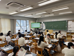 本日5校時、中3は遠足で訪れた大久野島について振り返り学習をしました。グループごとに平和について様々な側面から学びを深め、プレゼンテーションを行ないました。研修旅行で訪れる沖縄の事前学習も行いました。学び、考え、伝える力をつけてほしいです。