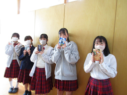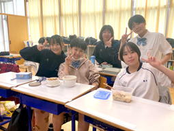 お昼休みの様子です。友達とわいわい楽しく昼食を食べていました。高等部中等部が一斉にお昼休みに入るので、学年を越えて一緒に昼食をとる生徒もいます。自由にのびのびと過ごして、午後からの授業に備え心機一転する大切な時間です。