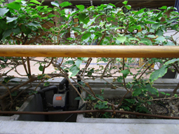 本校は屋内に樹木や植え込みがあります。水やりが欠かせませんが、常に人の手で行うのは難しいため、自動散水装置が設置されています。年に2度、電池切れなどないか点検し、入れ替え作業を行います。今年はいつまでも暑かったせいか、植え込みの木々は水をしっかり吸い上げ、例年よりも青々とした葉を繁らせています。急に朝晩が寒くなってきましたが、暖かい屋内で元気に成長してほしいと思います。
