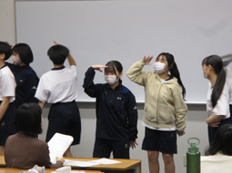 個性輝き学習の中間発表会がベンジャミンホールで行われました。中等部2年生は4月からミュージカルに取り組み、練習の成果を披露しました。良かった点は、台本を見ずに発表できた生徒が多くいたこと、改善点は、普段の元気の良さが出せていなかったことです。2月の本番がいっそう楽しみになりました。