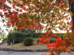 例年より遅めに色づいていた校舎横の紅葉も、昨日の雨や風でかなり散ってしまいました。それでもまだ残っている葉はすてきな景色を見せてくれています。