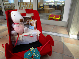 本校の図書室前には、可愛いぬいぐるみとサンタのそりが置かれています。卒業生が制作したものを譲り受けて、12月限定で展示しているのです。せっかくなので、おすすめ本コーナーに置かれているお菓子の本を飾ってみました。クリスマスも近いので、この本を読んでぜひお菓子作りなどしてみてはいかがでしょうか?他にも色々なおすすめ本がありますので、冬休みに向けて本を借りに来てくださいね。