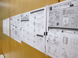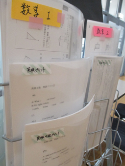 職員室前の雑誌棚には、英検の問題や数学の計算プリントが置いてあります。これは、生徒の自習用の課題であり、好きな時間に問題を解き、廊下に掲示してある解答で答え合わせをすることができます。朝や放課後の廊下に、学びへ向かう生徒たちの姿が今日も息づいています。