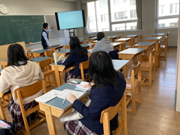 今日、3年生の「個性輝き学習」の授業がありました。中間発表会を終え、生徒たちは自分たちの発表を振り返りながら、よりよい内容を目指して準備を進めています。現在は、発表にいっそうの説得力をもたせるため、テーマに関係する企業や団体の方々にご協力をいただき、フィールドワークの準備にも取り組んでいます。実際の現場の声や体験を取り入れることで、学びをより深めていく予定です。2月の本番発表に向け、生徒たちの成長が感じられる発表になることを願っています。
