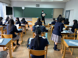 アメリカから2人短期留学生が来ています。高1に所属している留学生は、とても明るく活発な生徒で、すぐにクラスメイトとも打ち解けている様子でした。日本の文化や学校生活を思う存分楽しんでほしいです。