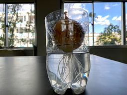さまざまな料理で使われる、万能野菜の「タマネギ」。実は、優秀な実験の材料として理科でも頻繁に使用します。今回は中等部3年生の「体細胞分裂の観察」で、タマネギの根の先端部分を観察しました。班ごとにタマネギに下処理を施して、毎日水換えを行ってきました。日々目に見える形で成長してきた根たちが、ミクロの視点ではどのように成長しているのか、しっかり観察してほしいと思い